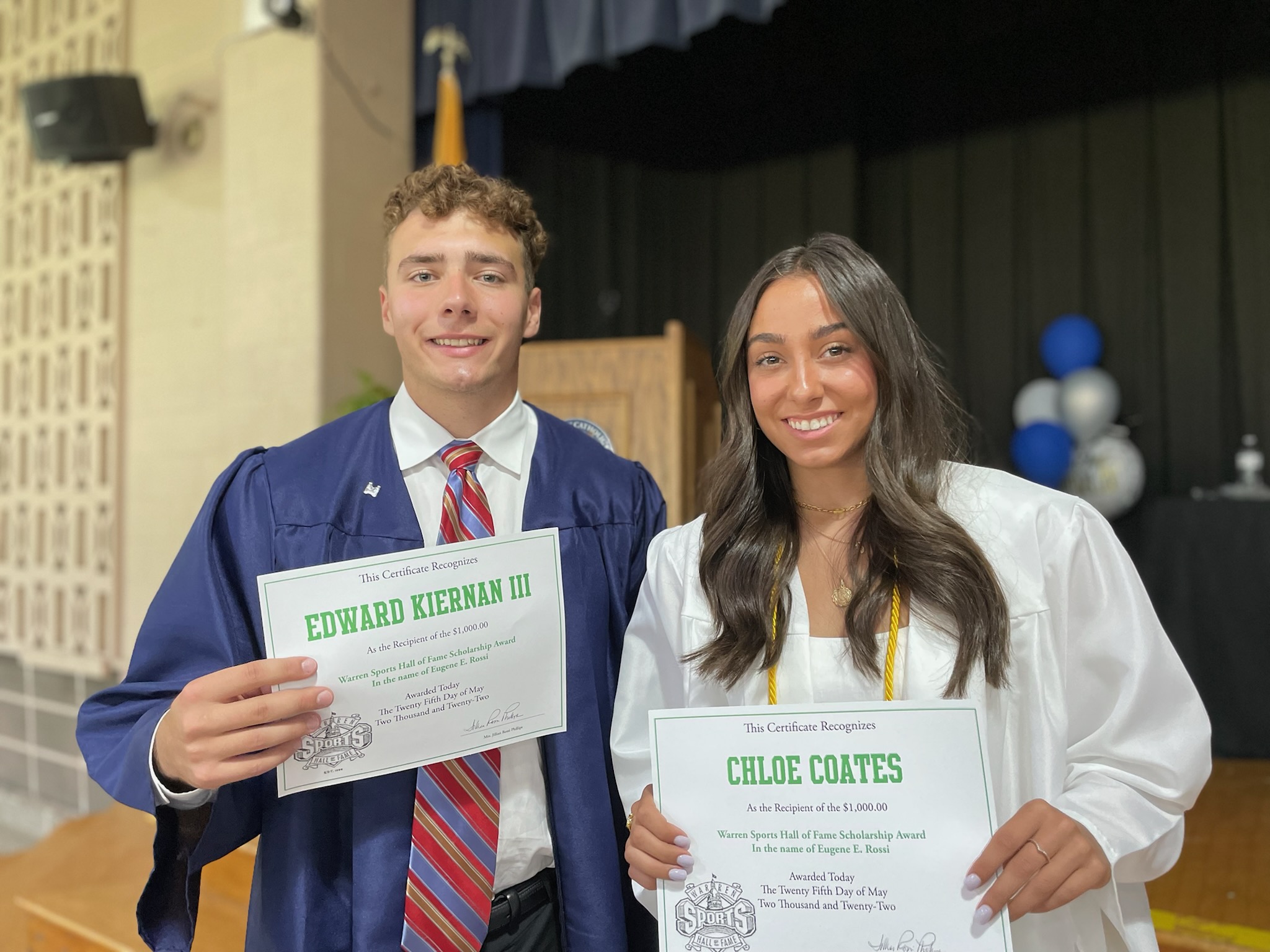 The Warren Sports Hall of Fame, proudly presented Riley Brown and Thaddeus McCollough - Alexander with The Donald Ford Scholarship, both received $500.00 to further their education.